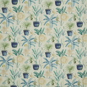 The collection showcases large scale digitally printed foliage, with woven cotton stripes and jacquard geometrics.